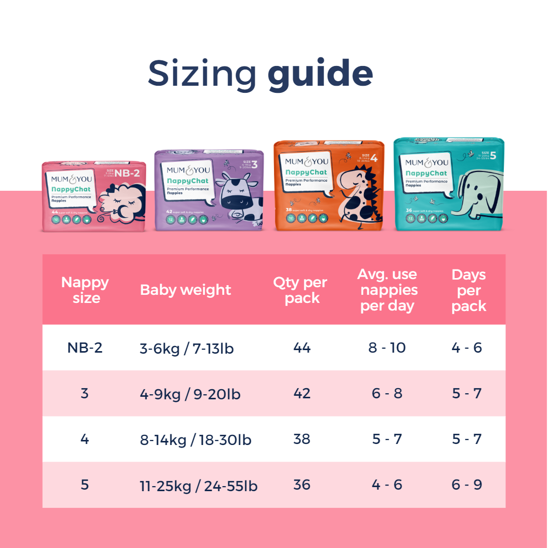 Very absorbent, can be worn for hours with leaks or discomfort. Sizing is different to other nappies as there are only sizes from 2 to 5.