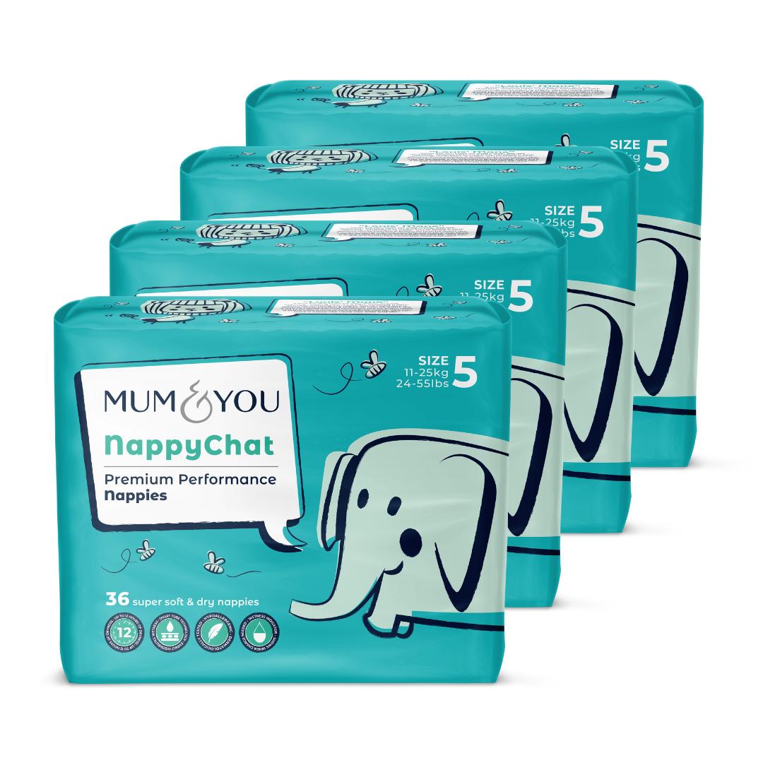 Mum and You nappies feature new Smart-Tube technology which distributes wetness evenly throughout the nappy, improving how it fits and protecting against leakages. They also feature a new wetness indicator, and are soft and flexible for added comfort. They’re free from perfumes and lotions, making them suitable for newborn and the most sensitive skin. Their super absorbent core locks moisture away from your baby’s skin and guards against leaks for up to 12 hours